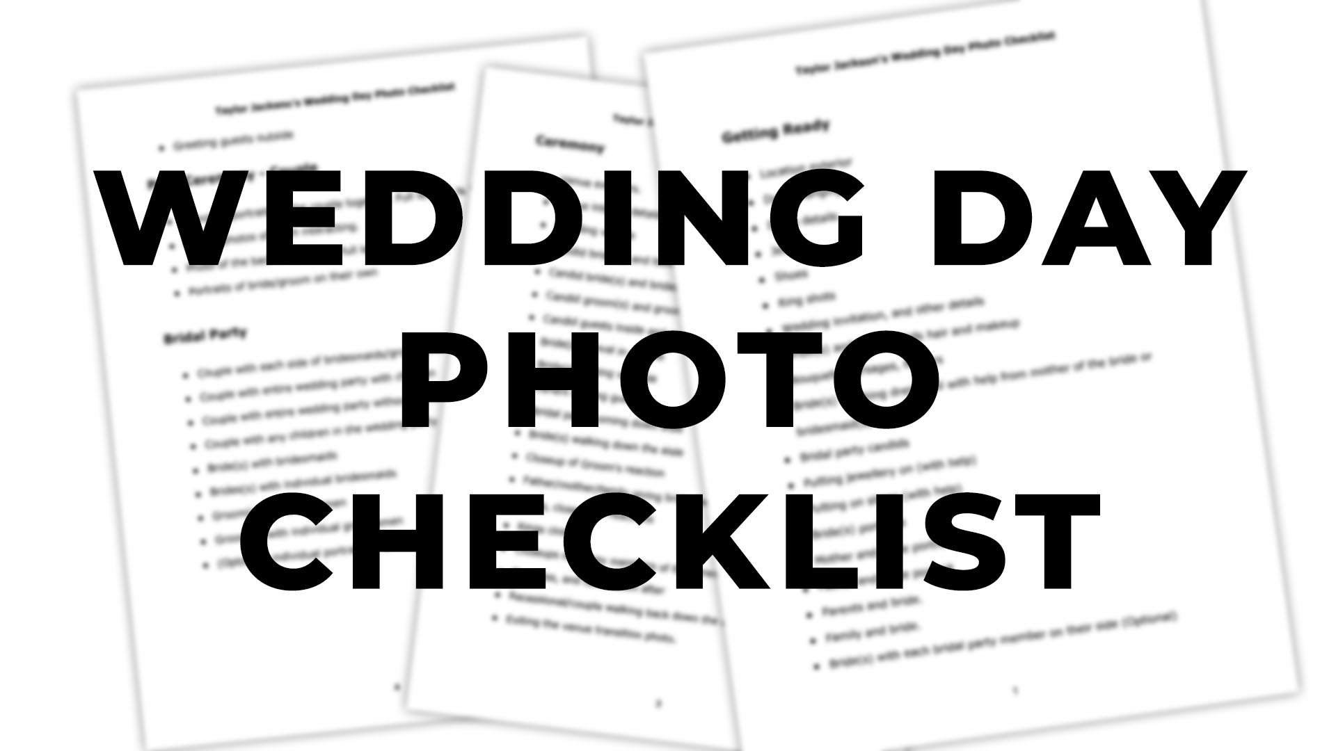 WEDDING PHOTOGRAPHY PHOTO CHECKLIST